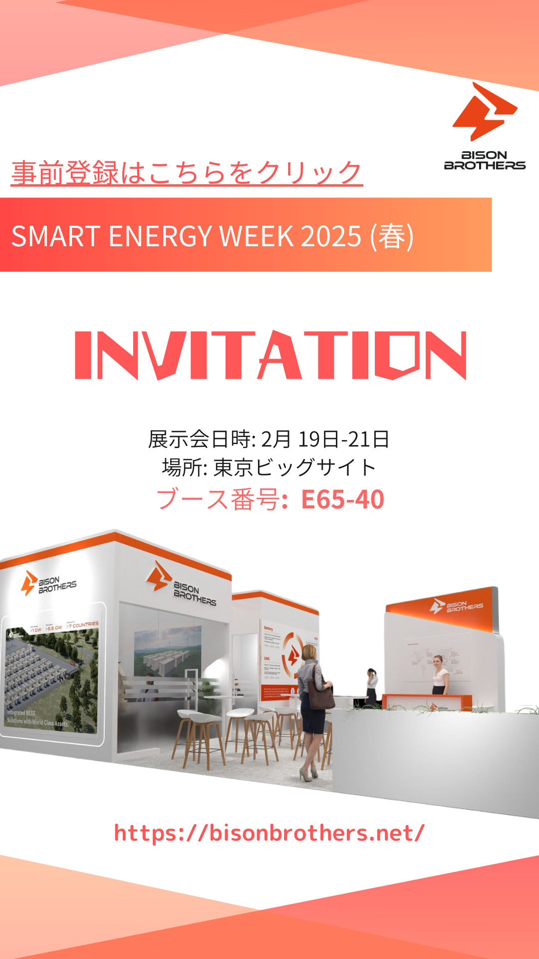 東京ビッグサイトで2月19~21日に開催されるSMART ENERGY WEEKにBison Brothersが出展いたします。